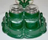 The clock has a set key wind movement and a marked gold colored paper dial. The glass inkwells are set into a cast iron frame marked "Verona Patented 510". The clock is running at this time. 8 1/4" Tall
