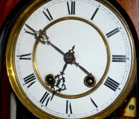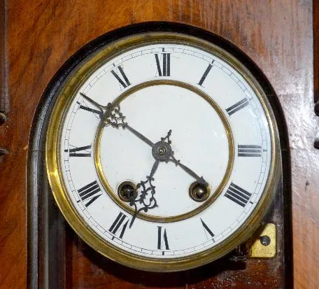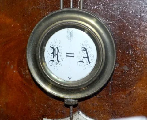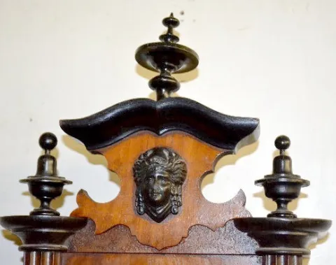 With an 8 day T&S movement; an unmarked porcelain dial; an RA pendulum and the key. Not tested. (The lady head crest needs to be re-attached.) 35" Lon...