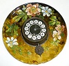 Haviland Plate Clock w/Applied Flowers: Unmarked with a Phoenician head pendulum. Running at this time. 11 1/2" Diameter.