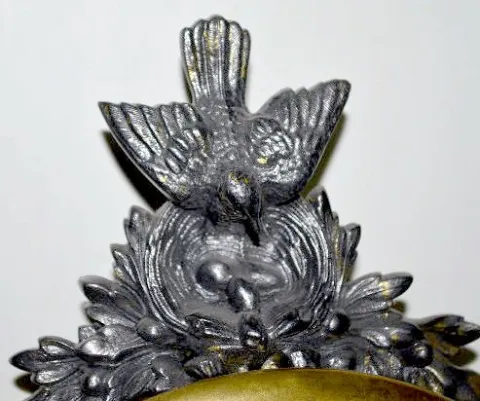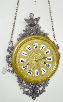 French Brass & Metal Hanging Clock, Bird Nest
