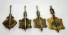 There is one with a pink and white pinwheel; one with a red and white 6-point star in gold; one with a red and white 6-point star in white; an "Eclipse" with a green and white 6-point star. All are in as found used condition. Longest 8"