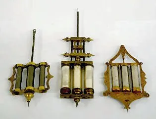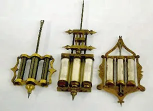 3 Antique 3 Cylinder Clock Pendulums They are of different styles and lengths. In as found used condition. Longest 10"