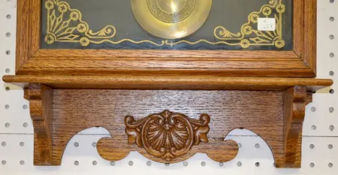 In an Ingraham "Western Union" case with a TO movement; a paper dial marked "Ingraham" and "Delicious Drink Coca Cola 5? Refreshing"; "Regulator" stenciled lower glass with an American flag sticker. The pendulum and key are with the clock. Not tested. 36" Long