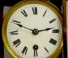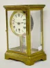 With a signed TO movement and an unmarked porcelain dial in a beveled glass and brass case with a live mercury pendulum. (The clock winds OK but it will run for just a few seconds then stops. There is no key with the clock.) 9 1/2" Tall
