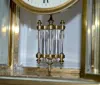 Vermont Clock Co. Crystal Regulator With a signed TO movement and an unmarked porcelain dial in a beveled glass and brass case with a live mercury pendulum. (The clock winds OK but it will run for just a few seconds then stops. There is no key with the clock.) 9 1/2" Tall