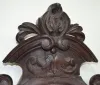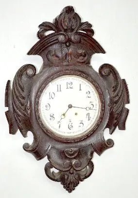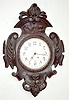 European Black Forest Style Carved Wall Clock With a T&S movement in a heavily carved oak case. The key and pendulum are with the clock. Not tested. (The dial has been replaced. The bezel has been repaired. There is some damage to the case.) 28" Tall