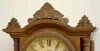 Ingraham Walnut Shelf Calendar Clock In a masterfully built case by Dick Broline, the owner; with a new 8 day T&S movement; new unmarked paper dials and the pendulum. The clock is running and striking at this time. (The door latch to the top door is broken. The clock striker back winds.) 22 1/2" Tall