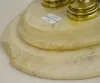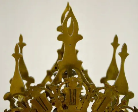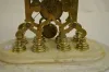 (The TO movement was originally chain driven but that has been replaced with a multi-strand wire, which is not connected at this time. The white marble base has a large chip on one end. The clock is not running at this time.) 16" Tall