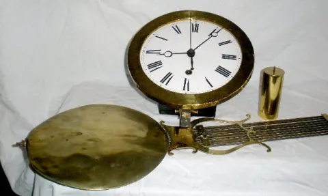 porcelain dial, 1 weight & pendulum. (Pendulum is dented.) All