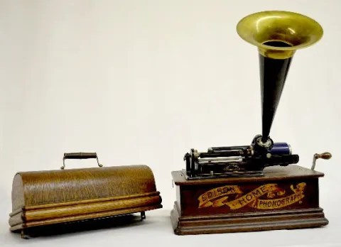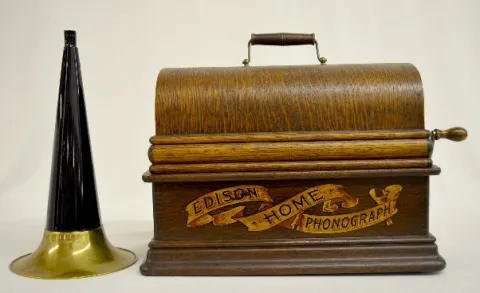 Edison Home Phonograph w/ Horn & Lid