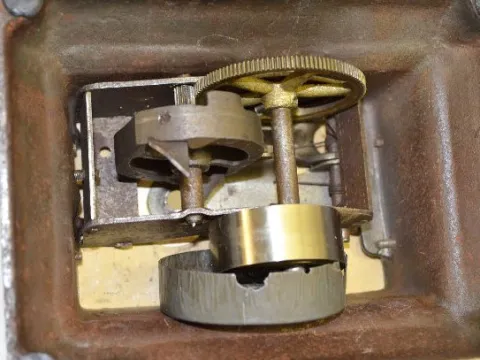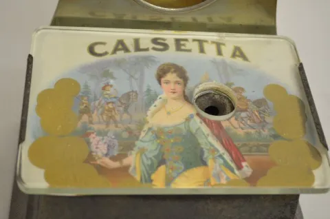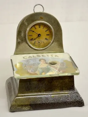 The clock was made by Waterbury for the Brunhoff Co. of Cincinnati, Ohio for use as their countertop cigar cutters. This one has an ad for CALSETTA un...
