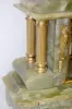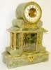 Marti 1900 Green Onyx Mantel Clock The bell striking movement is No. 808 and it supports a 2 tube, live mercury pendulum. The dial has visible escapement. The onyx case has an applied bronze or brass plate below the dial. There is a scene of 5 young cherubs at play. With half hour and hour strike, the clock is running and striking at this time. (The heavy beveled glass window for the front has a chip on the upper right edge of the glass. The left front corner of the case is missing a large chip.) Dial - 5 1/2" Wide; Case - 19 1/4" Tall x 15 1/2" Wide