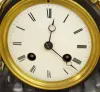 Marti Slate and Bronze Figural Clock, Circa 1870 With No. 939, a bell striking movement and a porcelain dial. The highly polished bust on the top of the case is unmarked. There are metal ornaments and feet. Two of the feet are large claws. The other two are claws clutching an egg. The clock is running and striking at this time. (The porcelain dial has a hairline between the 3 & 4.)