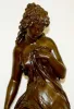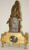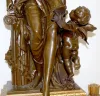 Marti Figural Mantel Clock - Lady and Cherub With 1/2 hour bell strike movement, No. 8050, H&F Paris and a porcelain dial with visible date 1867. A cupid like figure is holding a mirror for the lady so she can look at herself. The clock is running and striking at this time. Dial - 4 1/2" Diameter; Case - 28 1/2" Tall x 16" Wide (Other wording on the dial is not decipherable. The statue has been recolored. The metal finish on the base is dirty looking.)