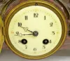 The strike is on a bell. There is a cream colored dial. Aug. Moreau designed the bronze figures of a boy and girl. They stand on a dark red marble base with white spots. The figures are not attached to the base in any way. Not tested. ( The glass in the back access door is cracked.) Dial - 3" Diameter; Case - 24" Tall