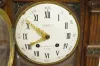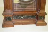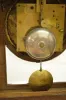 Also in the Pons stamp there is "Medaille Dor". Above the makers stamp, in an oval, is "Farret A Paris" (Farret dates 1840 - 1870). The strike is on a bell; the porcelain dial, with fancy hands, is also marked "Farret 25 - Rue Chapon - A Paris". Below the dial is a beveled glass window. The oak case is topped with a bronze finial and inset pieces of black marble with white veins. There is a matching shelf that the case sits on. The clock is running and striking on the half hour. The clock is very clean and nice looking. (The bronze finial is rough.) Dial - 7 1/2" Diameter; Case - 26 3/4" Tall; Shelf - 16 1/4" Wide x 13" Long