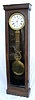 Oak Jewelers Pinwheel Regulator Clock This clock can be a floor or a wall model. There is a full length beveled plate glass door. The clock is running at this time. The pendulum is with the clock. 6'7" Tall x 23" Wide