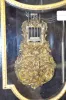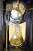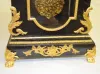 With a gong strike movement, a fancy pendulum and a dial with porcelain Roman Numerals. In an ebonized wood case with gilt bronze decorations, including a flame coming out of the top. The 2 figureheads that adorn the sides are also depicted in the center of the dial. The clock is running and striking the half hour at this time. (There is veneer damage to the top. One side is loose.) Dial - 5" Diameter; Case - 22 1/2" Tall