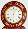 With a TO movement and a metal Seth Thomas dial also marked "Adv. Clocks Edw. P. Baird & Co. New York and Montreal". The upper case reads "Jolly Tar, Pastime, Old Honesty, Plank Road". The side medallions read "Boot Jack" and "Five Bros.". The lower case reads "Compliments of John Finzer & Bro's". The lower glass reads "Tobacco Manufacturers Louisville, Kentucky". The pendulum and directions are with the clock. This clock was masterfully crafted by Dick Broline, the owner. Not tested. 30" Tall