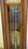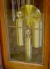 Colonial 9 Tube Large Grandfather Clock In an ornate mahogany case with an ornate moon phase dial with seconds bit; architectural top. It plays Westminster, Whittington & Canterbury Chimes. The brass weights are with the clock; number 1093; circa 1920. Not tested. (There is minor roughness on one foot.) 96" Tall