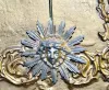circa 1960's to 70'; painted wood dial with cutout for a visible movement by Martha Smallwood with a weight driven, 8 day strap movement marked B.M. & Co.; in a custom gold leafed lyre case with a good interior label; the sunburst pendulum and the weights. Made of old and new parts. Not tested. (There is a small split in the wood at the bottom left hand side of the lyre.) 39" Tall Condition We regret to inform you that we have just discovered that the Birge & Mallory J. Ives lyre clock is a copy made in the late 60's to 70's. The owner had contacted the NAWCC museum through photography and was under the assumption this was a rare and old clock which it would be as one of only 3 known. This clock is made of old and new parts, it is still a very unusual fabulous looking clock. 10 times rarer than a Stennes for example. We are but are not embarrassed because we did not know any copies existed. This rare clock will still make a great example and addition to any advanced collection. We apologize for any inconvenience to bidders.