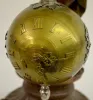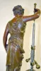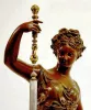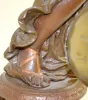 With an 8 day Time and Bell Strike movement. The pendulum is marked "Flinois Blondeau Horloge". The metal statue, with bronze balls, is mounted on a wooden base. Not tested. 28 1/2" Tall