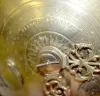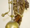 F. Blondeau Bell Strike Torsion Clock With an 8 day Time and Bell Strike movement. The pendulum is marked "Flinois Blondeau Horloge". The metal statue, with bronze balls, is mounted on a wooden base. Not tested. 28 1/2" Tall