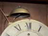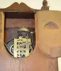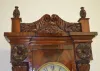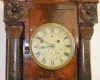 With an 8 day T&S movement; a painted steel dial with 2nds bit and the letters "GER' and "URN" (should read "Munger, Auburn"); a bell above the dial; the pendulum and weights. The case has stenciled stovepipe columns; carved acanthus leaf column tops; carved rosettes; a carved leaf and scroll crest and carved pineapple finials. The original mirrored glass is with the clock. Not tested. (Dial is worn) 40" Tall