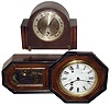 Clocks- 2 (Two) foreign 8 day wood cases: Skato Japanese time and strike school clock; Hamburg American oak double-chime mantel clock; both early 20th century
