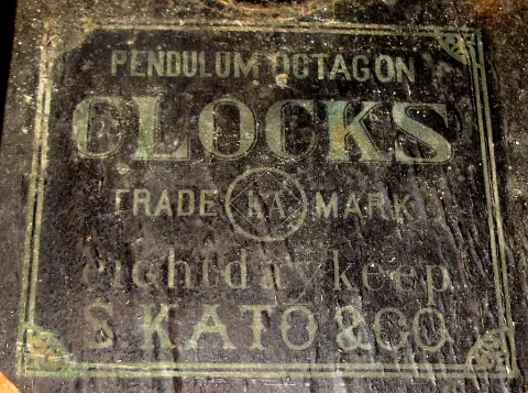 Clocks- 2 (Two) foreign 8 day wood cases: Skato Japanese time and strike school clock; Hamburg American oak double-chime mantel clock; both early 20th century The German chiming clock has an ornate dial and good quality W200 pendulum movement, 8 1/2" high. The Japanese regulator, made to imitate Connecticut clocks of the same period, has a two-tone case and fancy pendulum, 22" high. Note that round glass and its bezel are detached. Both wood cases have their original dry finishes. Neither tested; sold as is.