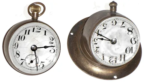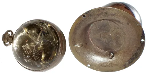 Clocks- 2 (Two) Waterbury Clock Co. glass ball and brass 30 hour time pieces: "Bulb" and "Sentinel", c1909