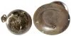 These two relatively rare desk clocks have intact thick glass magnifying lenses and old patina on the brass. The Sentinel, on its slanted mount, has a...