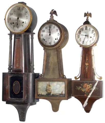 Clocks- 3 (Three) Connecticut 8 day wood banjo clocks, early 20th century