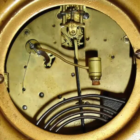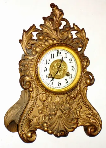 Waterbury Clock Co., Waterbury, Conn., cast metal 8 day, time and strike mantel clock, c1906