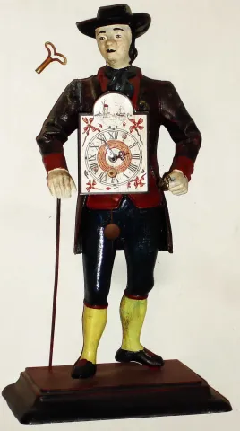 there is some wear and dirt that makes this novelty clock look older than it is, but the details, heavy castings and paint still are nice and worth en...