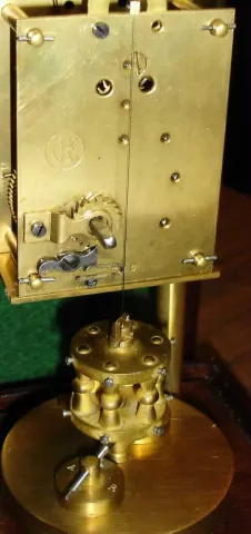 Clocks- 2 (Two) brass, glass and wood crystal regulators: French 8 day, time and strike; German 400-day; 20th century. These both appear to be attractive but made-up, with well-finished wood and brass, old movements, and flat glass. The French works are Vincenti also stamped "Maple and Co., Ltd, Paris", swinging a simulated mercury pendulum, new paper dial, ht 14". The disk-pendulum works, with original porcelain dial, have the KO (Kieninger and Obergfell) rear trademark, ht 11". Both movements seem to be running but may need service.