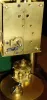 These both appear to be attractive but made-up, with well-finished wood and brass, old movements, and flat glass. The French works are Vincenti also stamped "Maple and Co., Ltd, Paris", swinging a simulated mercury pendulum, new paper dial, ht 14". The disk-pendulum works, with original porcelain dial, have the KO (Kieninger and Obergfell) rear trademark, ht 11". Both movements seem to be running but may need service.