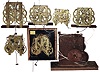 Clock movements- 7 (Seven) including one wooden works long case and six time and strike brass, 19th century The wooden works is complete with seat board and newer front hour wheel. Ansonia and Sessions made the two spring driven brass movements. The other four are weight driven but missing their verges; one is 8 day and the other three are 30 hour. Sold as is.