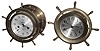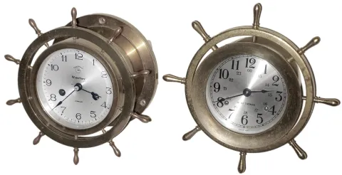 Clocks- 2 (Two) marine yacht-wheel 8 day ship's-bells brass wall clocks, Waterbury and Seth Thomas, 20th century
