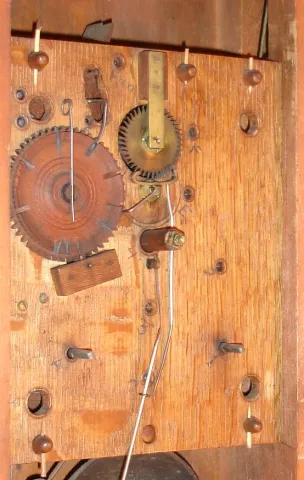 Samuel Terry, Bristol, Conn., 30 hour wood movement half column and splat shelf clock, c1830