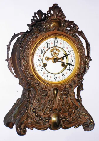 Waterbury Clock Co., Waterbury, Conn., cast metal 8 day, time and strike mantel clock, c1906