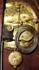 The solid mahogany tambour, with old surface, has a pristine porcelain dial and round movement with rack and snail striking, ht 10 1/2". The other cl...