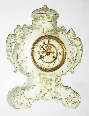 Waterbury Clock Co., Waterbury, Conn., 8 day, time and strike porcelain mantel clock, c1900