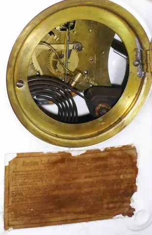 Waterbury Clock Co., Waterbury, Conn., Delft style, 8 day, time and strike porcelain mantel clock, c1900