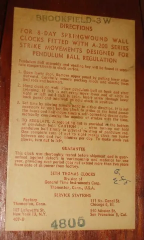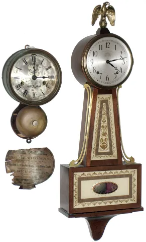 Clocks- 2 (Two) Seth Thomas hanging clocks: brass outside-bell 30 hour ship's bells; mahogany 8 day, time and strike banjo, 20th century