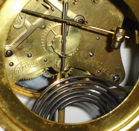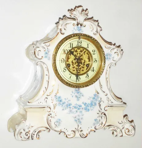 Waterbury Clock Co., Waterbury, Conn., 8 day, time and strike porcelain mantel clock, c1900