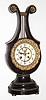 French, Marti and Cie, 8 day, time and strike, silk thread suspension lyre form mantel clock, c1850.