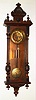 Gustav Becker, Freiburg, Germany, walnut 8 day, time and strike two weight Vienna regulator, c1890 There is an old dry finish, with nicks and scratches, on this ornate case, and it retains its original carved crest. The top of the case needs to be reglued to its sides, the front glass is replaced, the white porcelain beat scale is fine. The engraved brass dial, pulleys pendulum bob and weight shells have an old patina. The movement, with maker and Medaille D'Or stamps, is serial number 752842, and it ticks and strikes properly on a single gong rod. Ht 50"