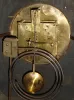 Made in the "Aesthetic Movement" style, this architectural case retains it original finish, with minor wear, and undamaged tile inserts and dial with no losses. The thick beveled glass is fine. The square plate movement, marked "A.C&B, Paris", should be serviced. Ht 19"