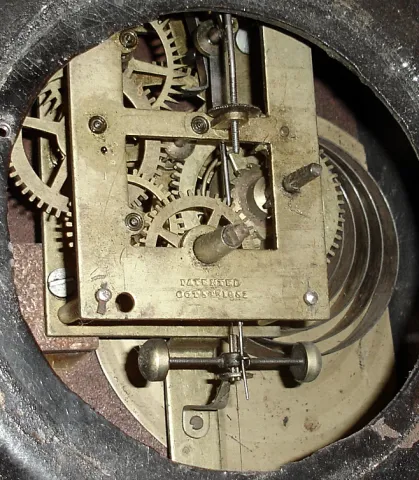 Terryville Manufacturing Company,Terryville, Conn., 30 hour iron front torsion pendulum mantel time piece, c1855